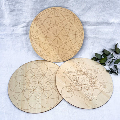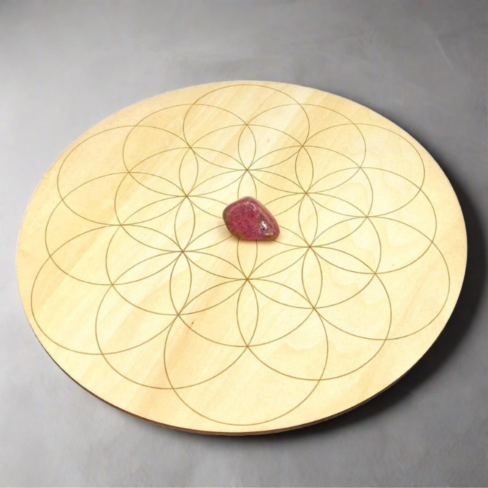 Flower of Life Wooden Crystal Grid Board - 20cm Wide